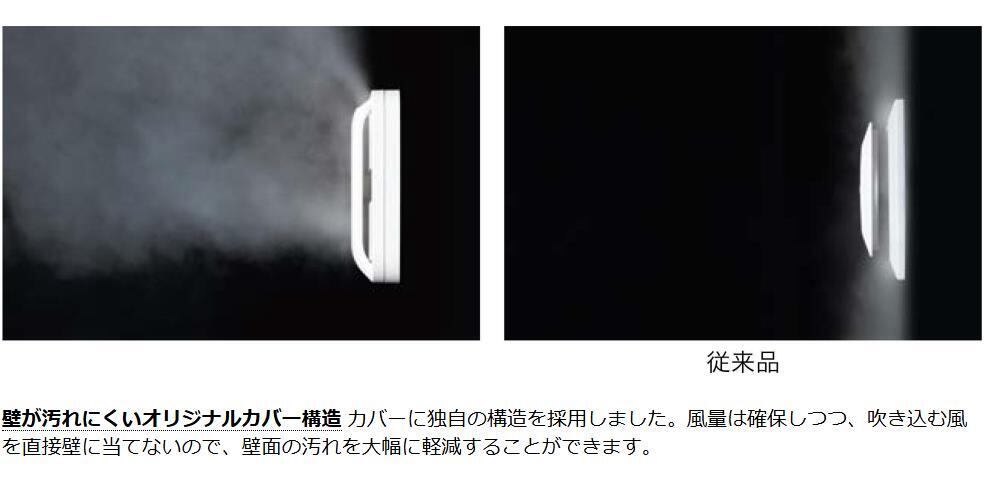 風量は確保しつつ、吹き込む風を直接壁に当てないので、壁面の汚れを大幅に軽減することができます。