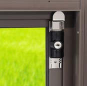 鍵を回して本体を移動し、窓枠を当てることで窓の開閉を抑止します。