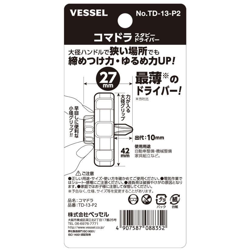 ベッセル コマドラ スタビードライバー No.TD-13-P2(+2×10)