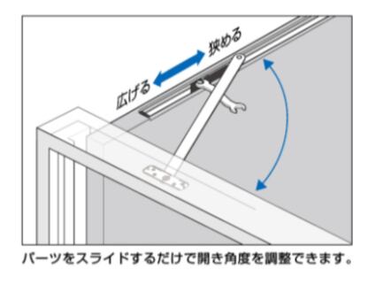 ●ストップ/ホールドパーツの位置をスライドして動かすことで、扉の開き角度を0°~110°の間で調整できます。