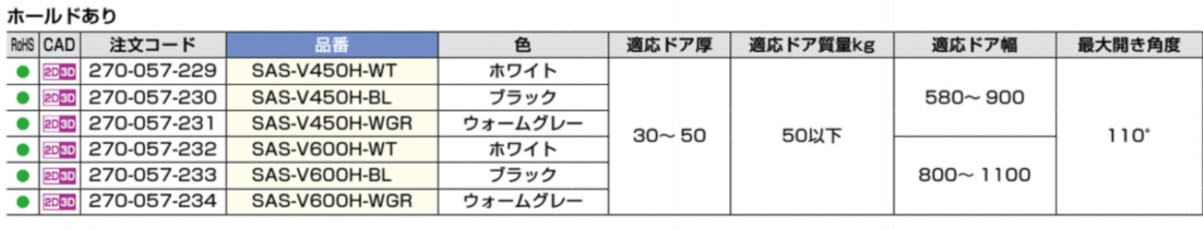 ●扉を開いた状態で仮保持する「ホールドあり」仕様が選べます。