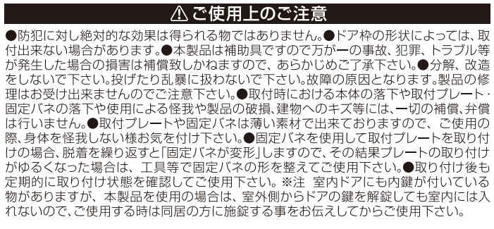 ※この製品は室内側に開くドアで、室内側から施錠するための製品です。