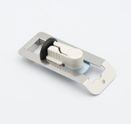 ドア枠のラッチが入る受け座部に取付金具を取り付けるだけ。