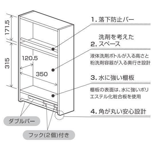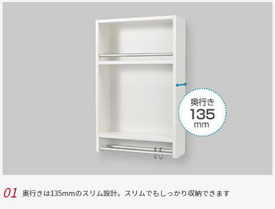 奥行き【135ミリ】なので邪魔にならず、洗面化粧台に収納出来なかったものを置いたり、洗濯機の側に取り付けて洗剤などを置いたり、限られたスペースのトイレの中に設置しても邪魔になりません。