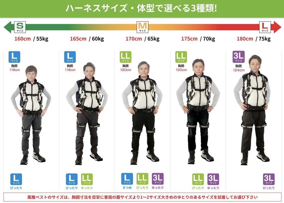 ハーネスの下に着ても風が通る!大風量タイプなので首元まで風が通ります。