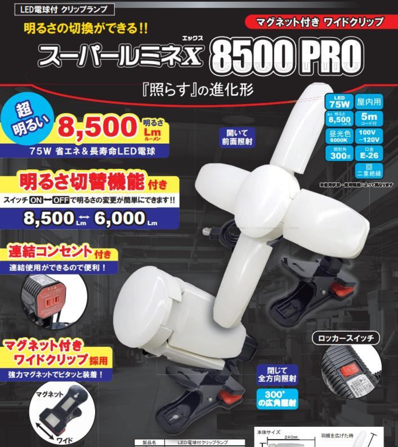 超明るい8500ルーメンのLED投光器です。