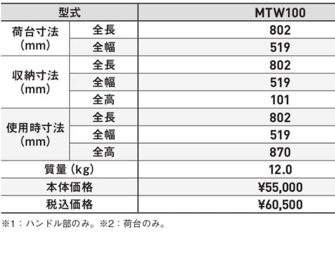 キャスターはストップ機構付きで、最大積載荷重は100Kg。