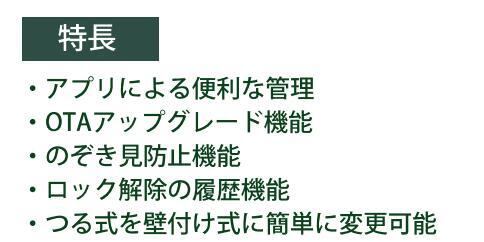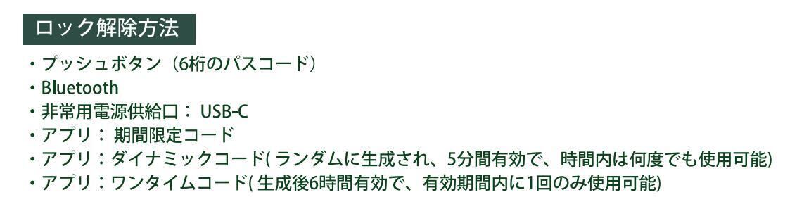 アプリによる便利な管理が可能で、期間限定で操作が可能になったり、暗証番号がランダムに生成され5分間だけ有効にしたり、暗証番号生成後、6時間以内に1回のみ操作が可能にしたりと、特殊な解錠方法が設定可能です。