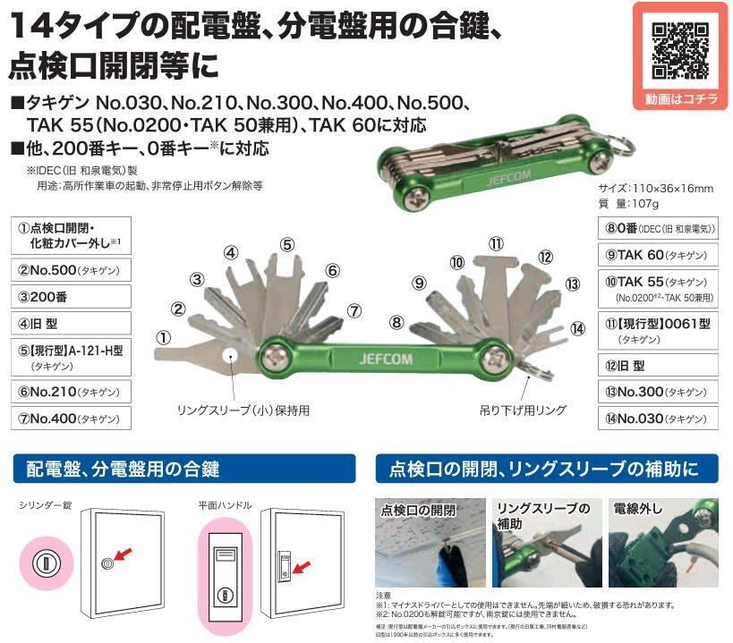 14タイプの配電盤、分電盤用の合鍵、点検口開閉等に使用可能な共通キーです。